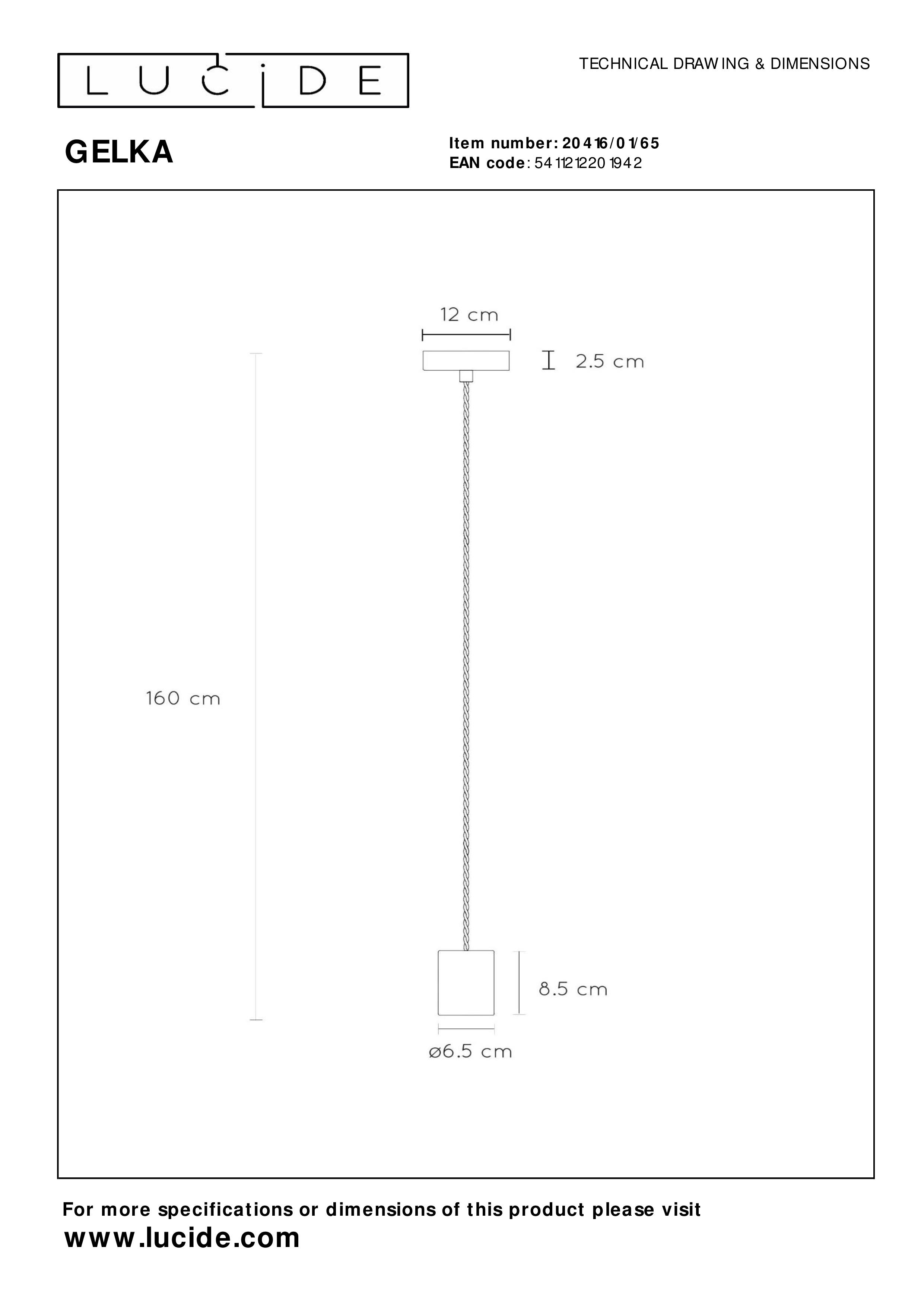 Lucide GELKA - Pendant light - Ø 6,5 cm - 1xE27 - Smoke Grey