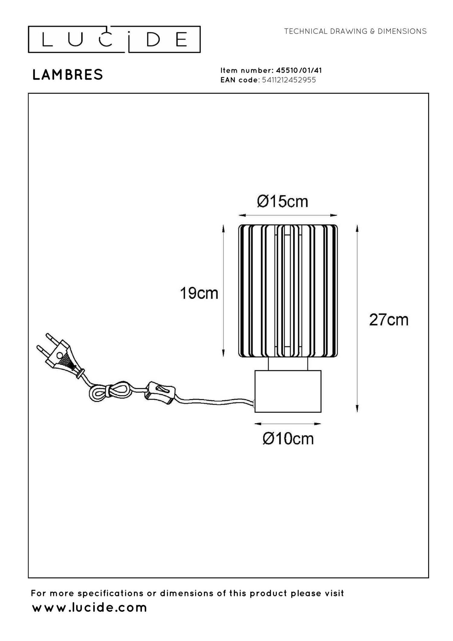 Lucide LAMBRES - Table lamp - Ø 15 cm - 1xE27 - Taupe