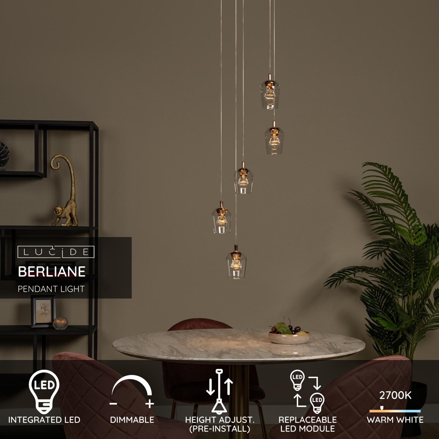 Lucide BERLIANE - Závesné svietidlo - Ø 34 cm - LED Rozm. - 5x3W 3000K - Transparent
