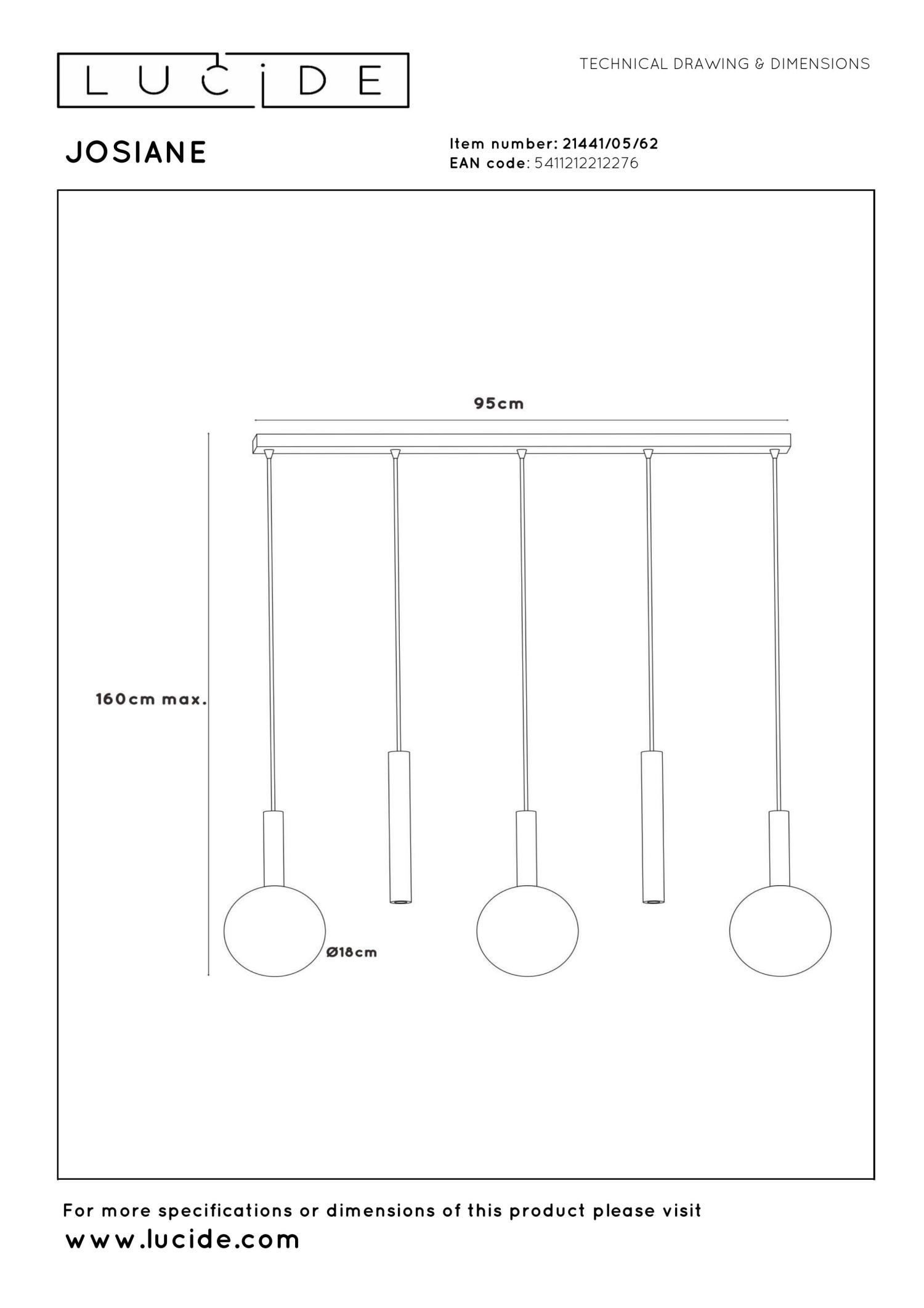 Lucide JOSIANE - Pendant light - 3xG9 - Amber - Vibes