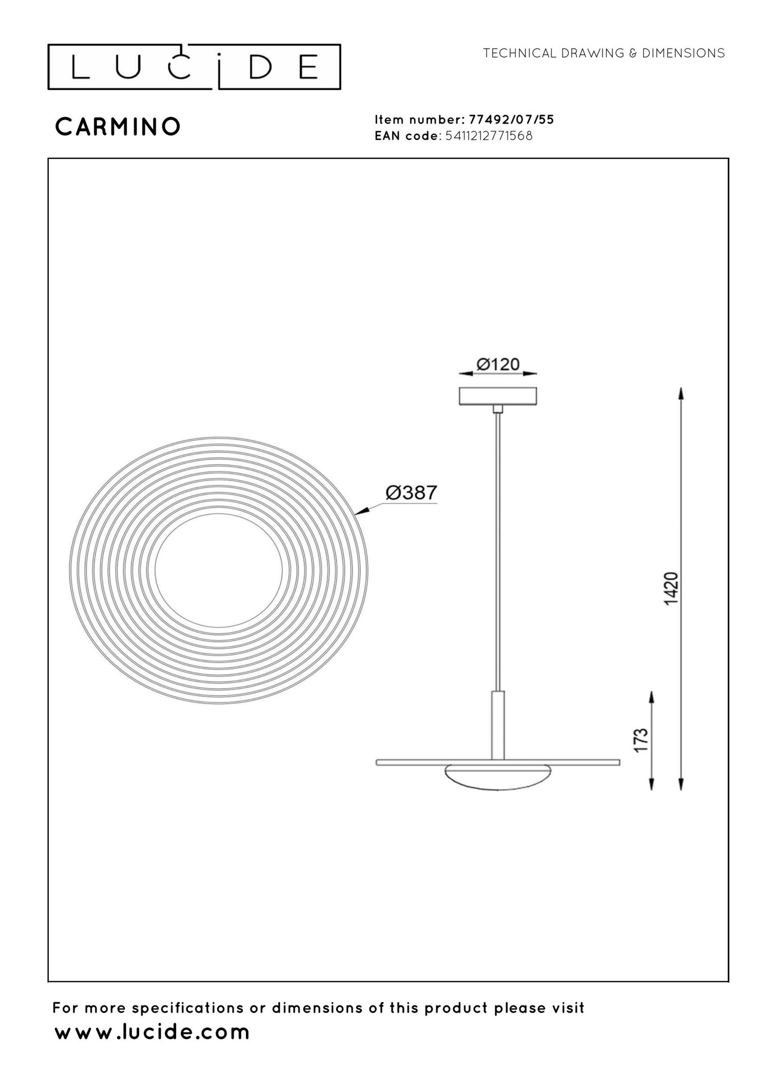 Lucide CARMINO - Pendant light - Ø 38,7 cm - LED - 1x8W 3000K - Terracotta
