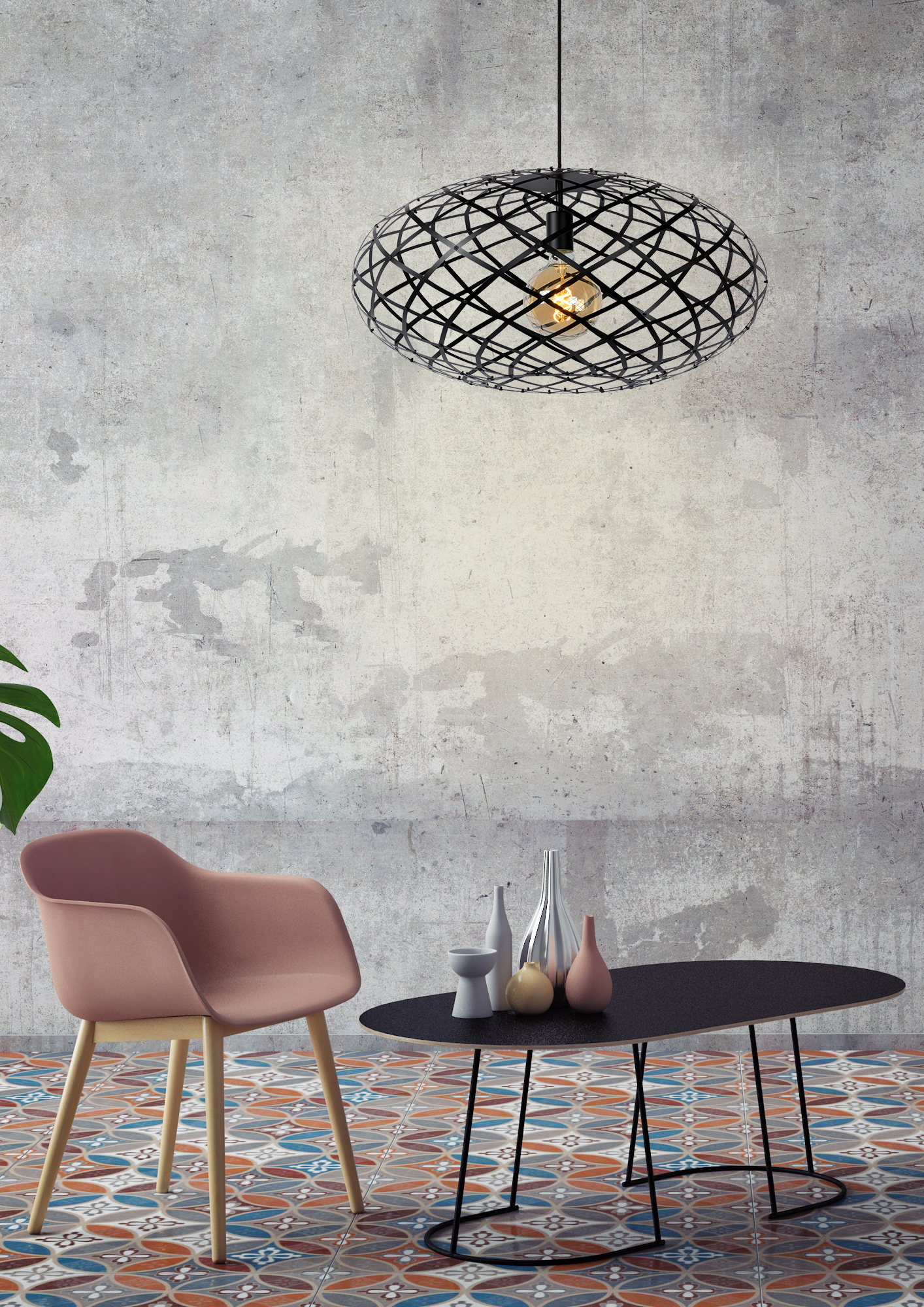 Lucide PASQUINO - Pendant light - Ø 60 cm - 1xE27 - Black