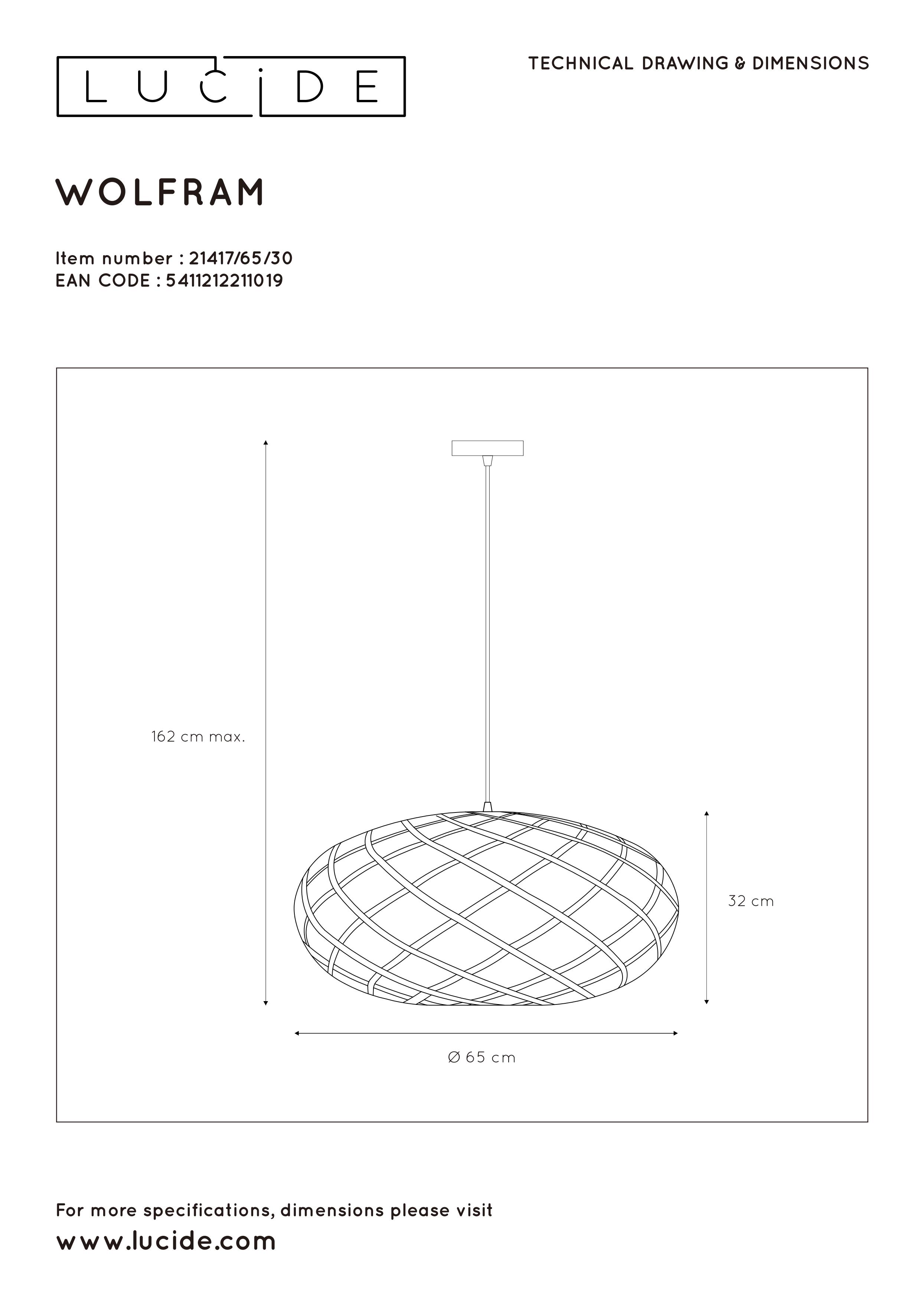 Lucide WOLFRAM - Závesné svietidlo - Ø 65 cm - 1xE27 - Čierna