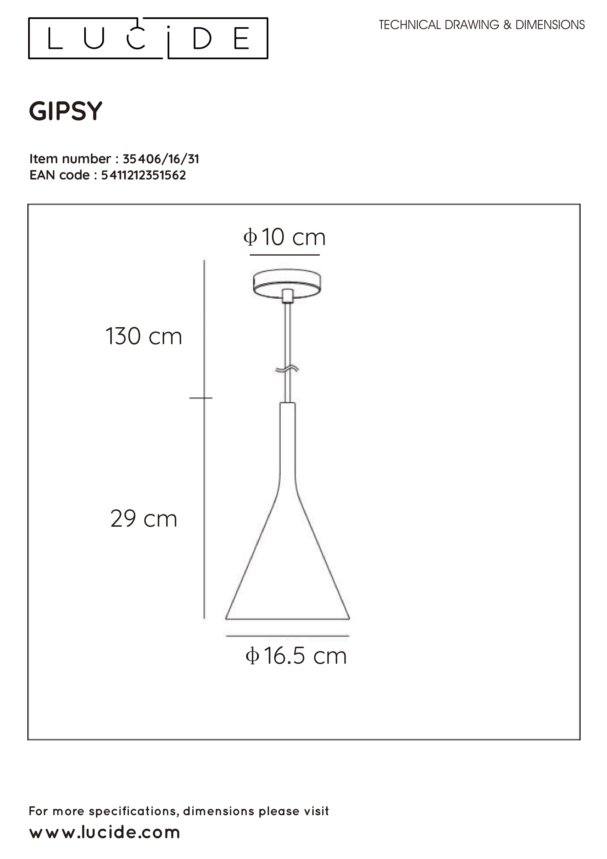 Gipsy má vo svete závesných lámp povesť. Najmä vďaka svojmu elegantnému dizajnu, ktorý pridáva kvalitu k funkčnosti. Závesná lampa lahodí oku vďaka svojmu čisto bielemu dizajnu. Gipsy meria až 17 centimetrov a dodá vašej obývačke svieži vzhľad. Vďaka možnosti LED osvetlenia má lampa svoj plný potenciál príjemne osvetliť váš domov.