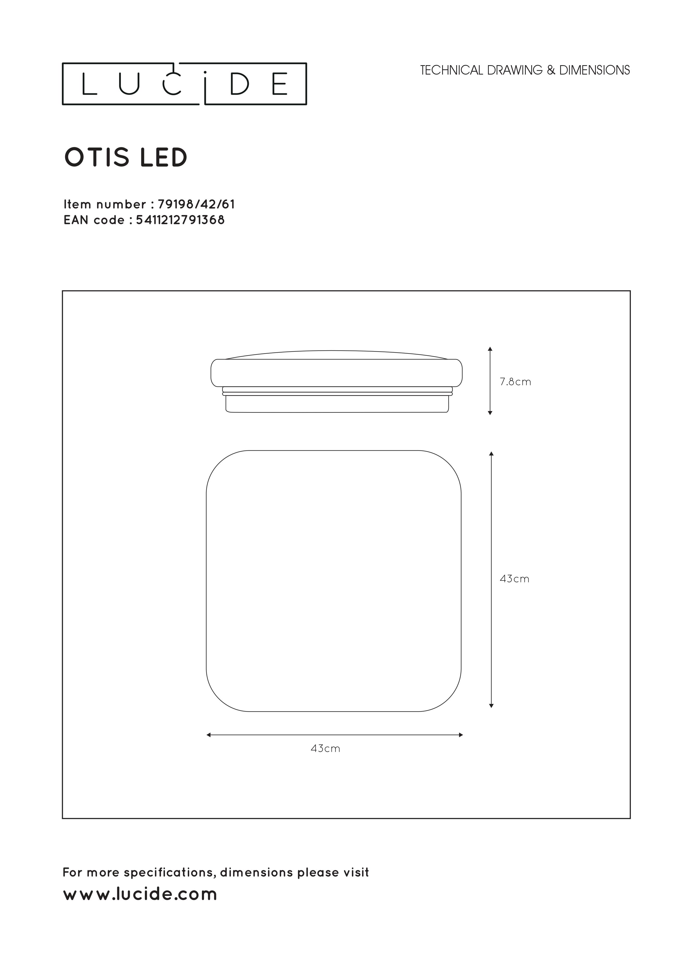 Štvorcový lightbox s rozmermi 43 x 43 centimetrov, to je Otis. Pôsobivé stropné svietidlo vyžaruje teplé biele svetlo a postaví váš moderný interiér do centra pozornosti. Svietidlo je vyrobené z prvotriednych plastov. Jeho integrovaná LED technológia robí z Otisu energeticky efektívne zapustené stropné svietidlo. S hrúbkou iba 8 centimetrov sa stropné svietidlo drží blízko stropu a tvorí tak decentný doplnok do vašej obývačky, kuchyne alebo spálne. Otis sa jednoducho pripája k nástennému vypínaču.