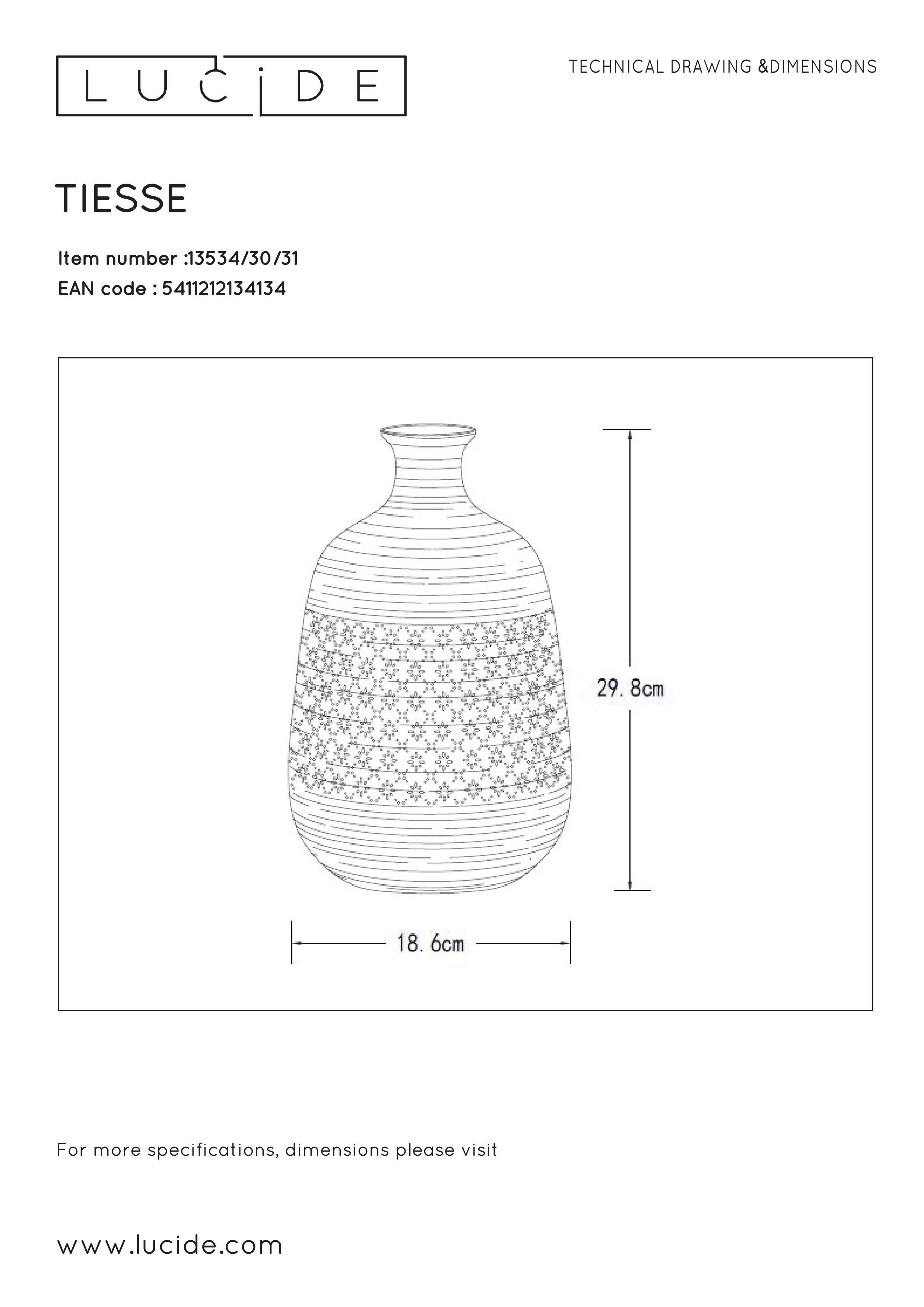 Dotyk jemnosti vo vašom interiéri možno dosiahnuť rôznymi spôsobmi, no žiadny materiál nie je taký rafinovaný ako porcelán. Tejto stolnej lampe s názvom Tiesse sme dodali extra elegantný nádych s motívom pierkového svetla pozdĺž miesta, kde svetlo uniká z lampy. Vďaka fľašovému tvaru s priemerom 18,6 cm pôsobí táto stolná lampa retro, ale je rovnako dobrým akcentom vo vidieckom alebo elegantnom modernom interiéri. Tiesse zapínate a vypínate jednoducho pomocou vypínača na kábli.
