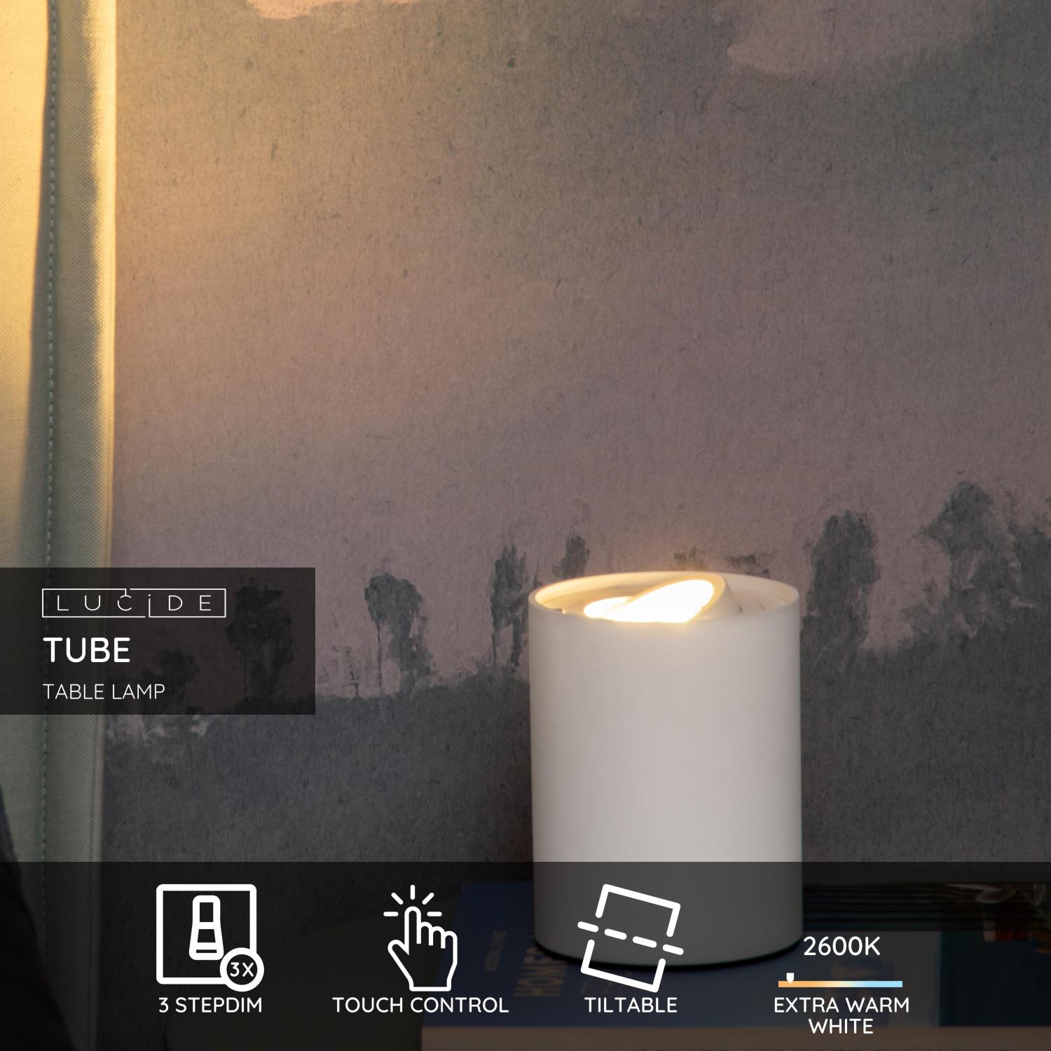 Lucide TUBE - Table lamp - Ø 9,6 cm- LED 3 StepDim - GU10 - 1x5W 2700K - Taupe