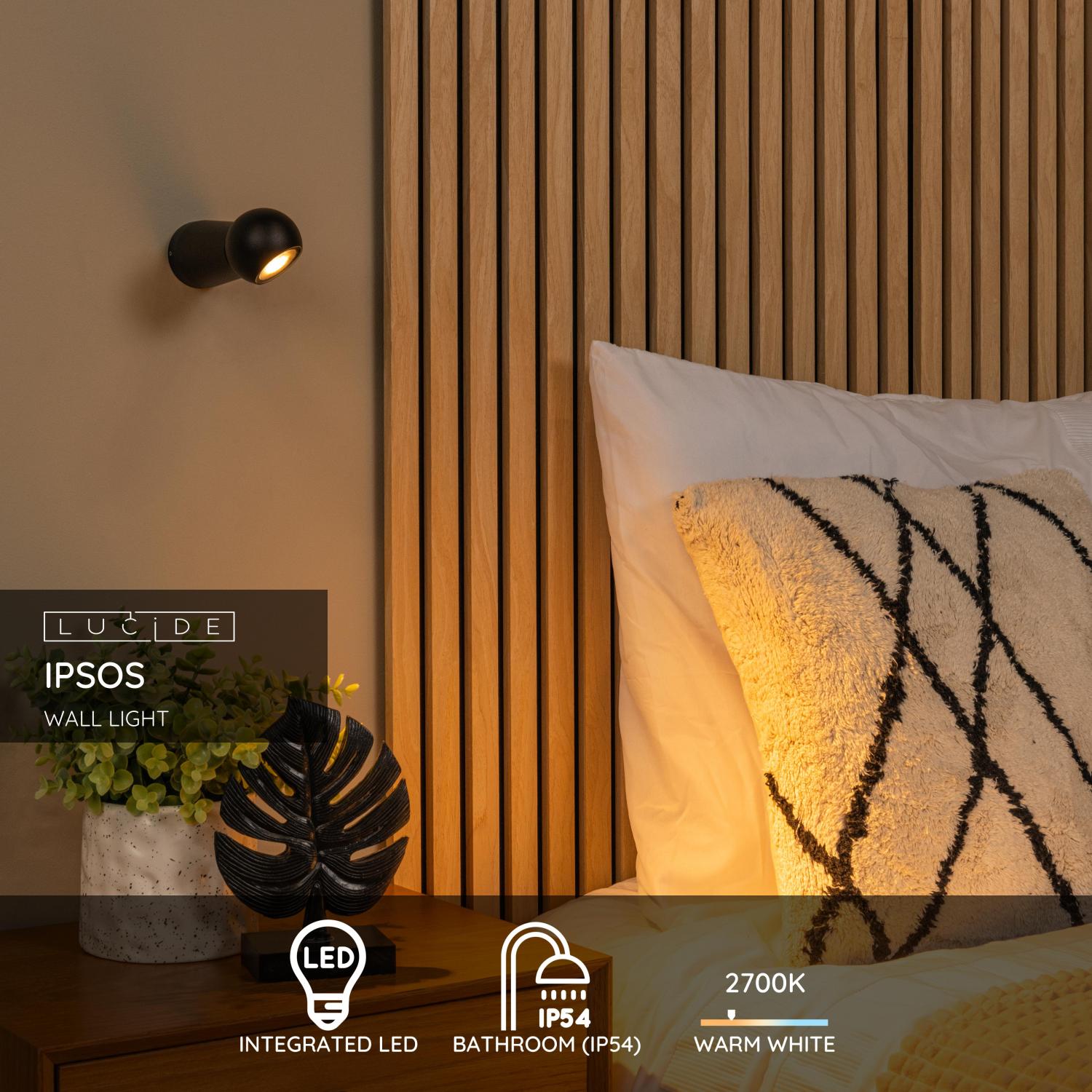 Lucide IPSOS - Nástenné svietidlo vnútorné/vonkajšie - LED - 1x6W 2700K - IP54 - čierne