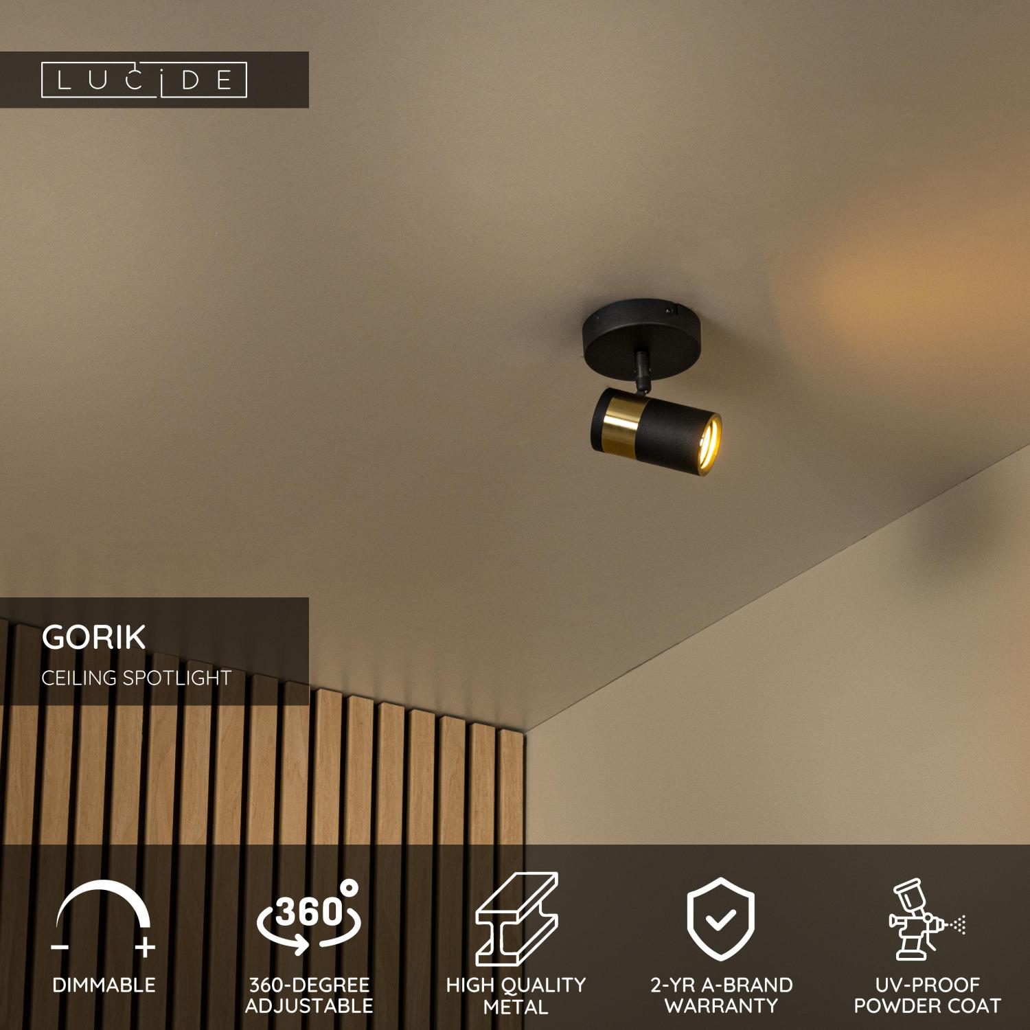 Nástenné bodové svietidlo Lucide GORIK kombinuje súčasný dizajn s všestrannou funkčnosťou. Vďaka kompaktným rozmerom 10 cm na dĺžku, 10 cm na šírku a 15 cm na výšku sa toto nástenné svietidlo perfektne hodí do moderných interiérov. Vysokokvalitný kovový rám s elegantným matným čiernym povrchom a akcentmi v matnej zlatej/mosadznej farbe vyžaruje eleganciu a štýl. Nastaviteľná hlava lampy poskytuje flexibilitu vďaka funkcii otáčania a nakláňania, čo je ideálne pre sústredené osvetlenie alebo vytvorenie teplej atmosféry. GORIK je kompatibilný s LED svetelným zdrojom (GU10) a ľahko sa pripája k stmievaču (nie je súčasťou dodávky). Dodajte svojej obývačke, kuchyni alebo chodbe luxusný nádych s týmto všestranným nástenným bodovým svietidlom – štýl a funkčnosť v jednom!